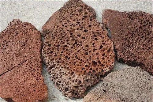 可分为五个种类:毫孔火山石、小孔火山石、中孔火山石、粗孔火山石、红色火山石。(前四种主要颜色为黑色或灰色)