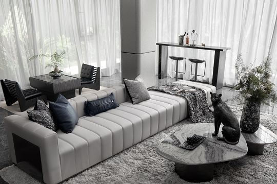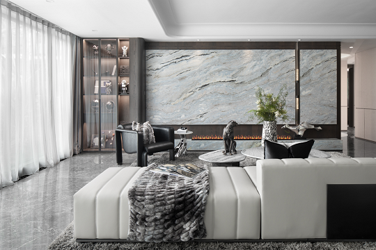 富有光泽的大理石、雅奢简约的皮质、柔软素雅的布艺,共同组合出丰富细腻的肌理层次,赋予客厅更多的生活仪式感,营造出个性又不失优雅的生活场景。