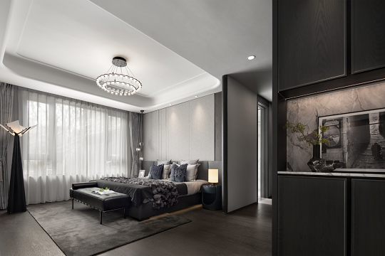 空间奢华时尚的格调更具体现,浮动黄昏灯光,就像一抹碾碎的鎏金。