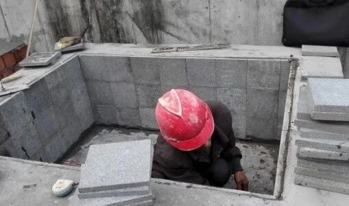 2、基层湿润:水池墙地面找平砂浆基面应用水冲洗干净,操作前,基面应湿润,含水率达到15%到25%;